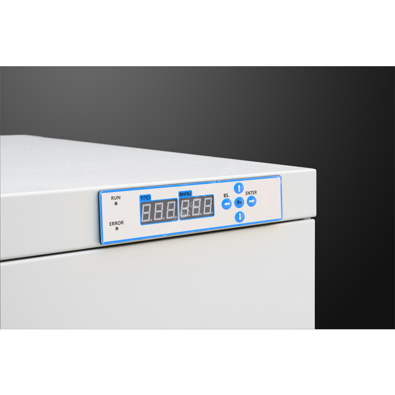 Climatest Symor® Sausos laikymo spinta, tai korpusas su elektroniniu drėgmės reguliavimu, kuris automatiškai palaiko žemą santykinio drėgnumo (RH) vertę, sausos laikymo spinta yra įvairių dydžių ir formų, ji patikimai palaiko <5%RH žemos drėgmės aplinką, tiksliai valdant santykinį drėgnumą.