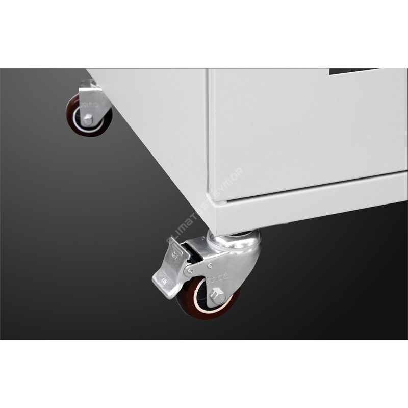 - Sustiprinti PU ratukai sumontuoti sausos laikymo spintelės apačioje, du priekiniai su stabdžiais, kad būtų lengva judėti ir sustabdyti.